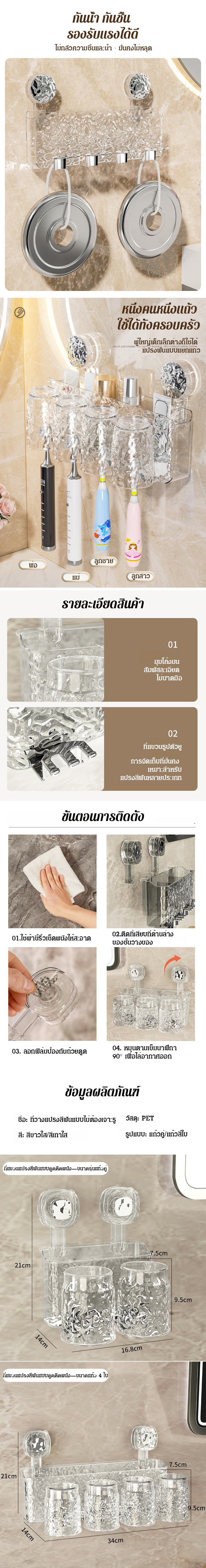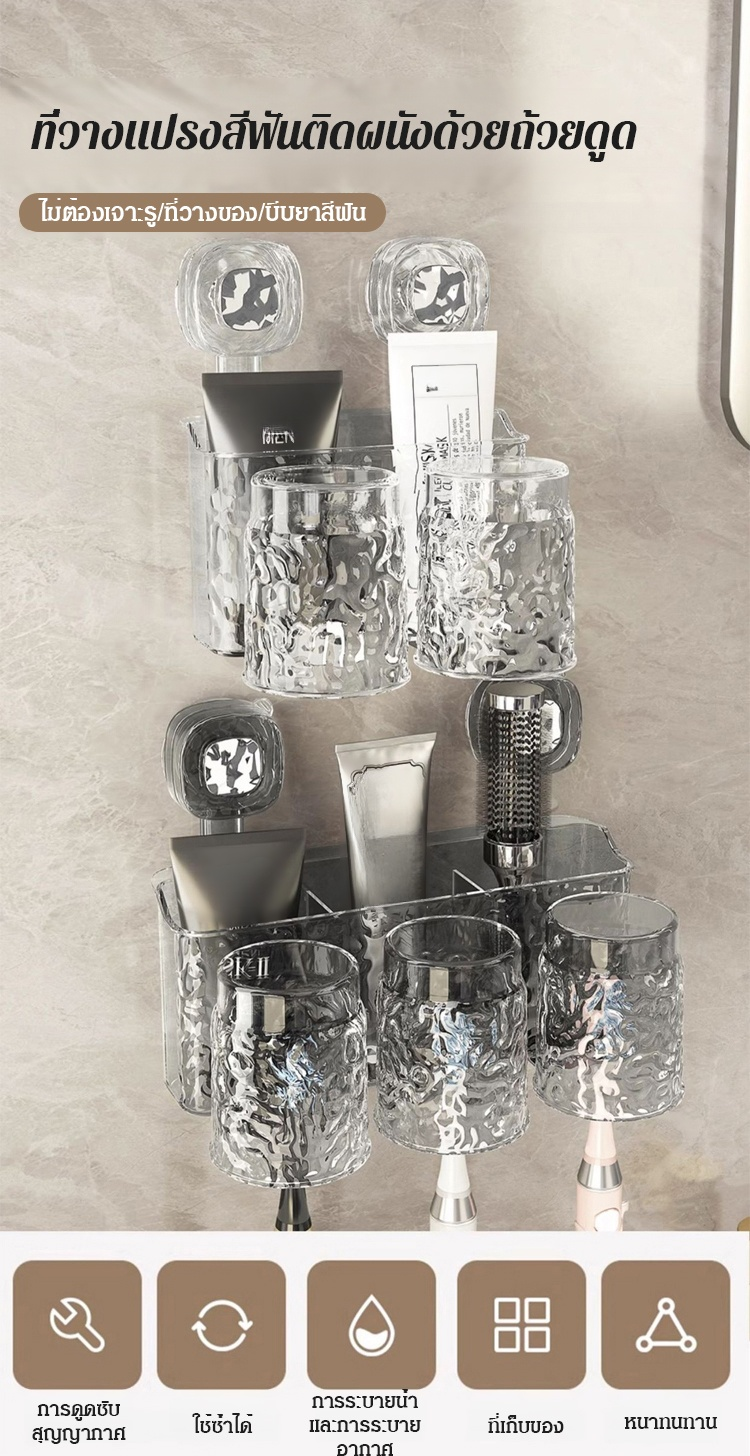 ที่วางแปรงสีฟันติดผนังแบบไม่ต้องเจาะรู