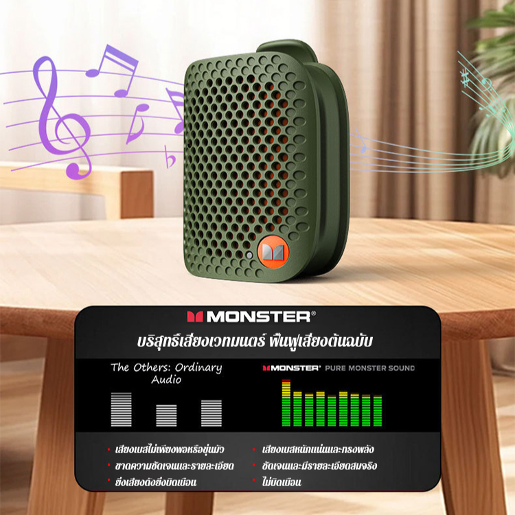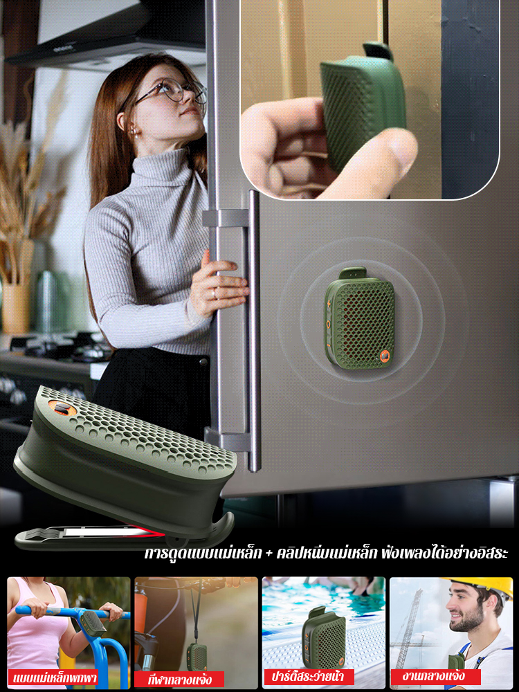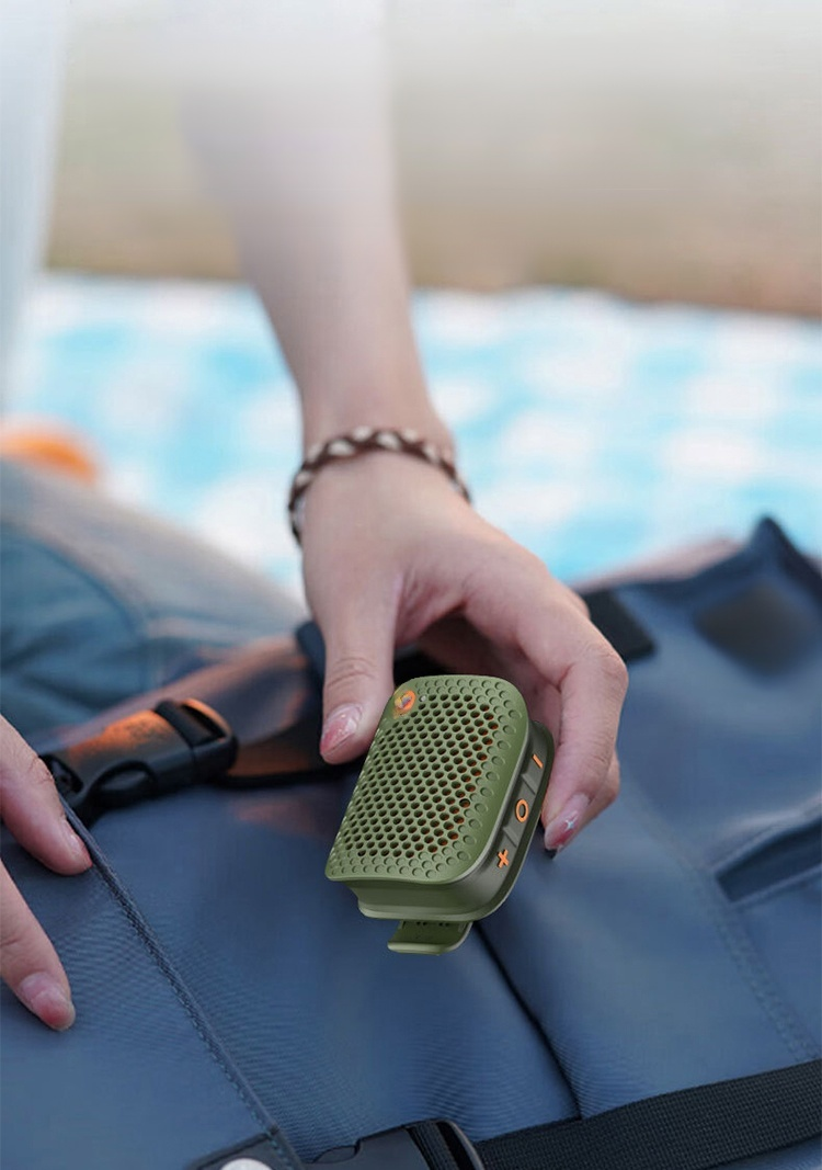 ลำโพงบลูทูธขนาดเล็กเสียงเบสหนักแบบหนีบได้ แบตเตอรี่ใช้งานได้ยาวนาน